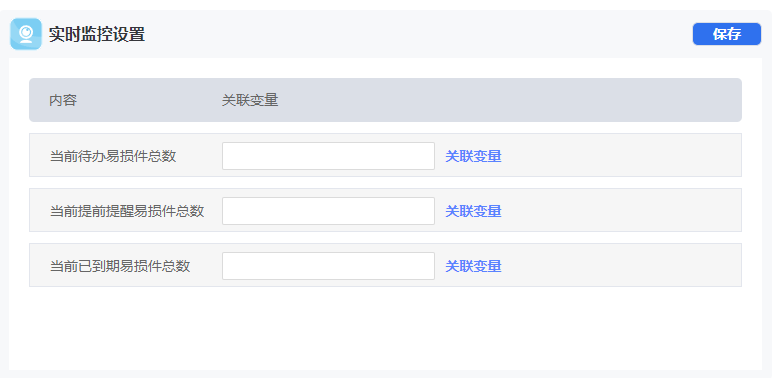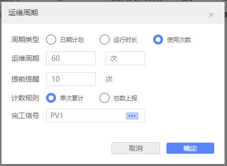 • 待办提醒信号:易损件寿命到期或提前提醒的检测信号,关联二进制变量,当系统检测到易损件寿命到期或满足提前提醒的条件时,信号触发。提醒用户更换/延长时易损件。