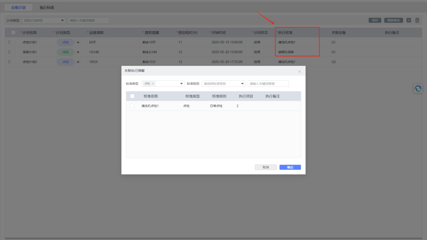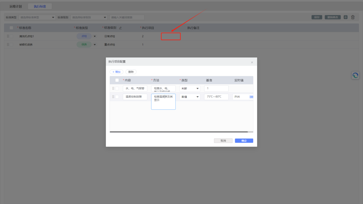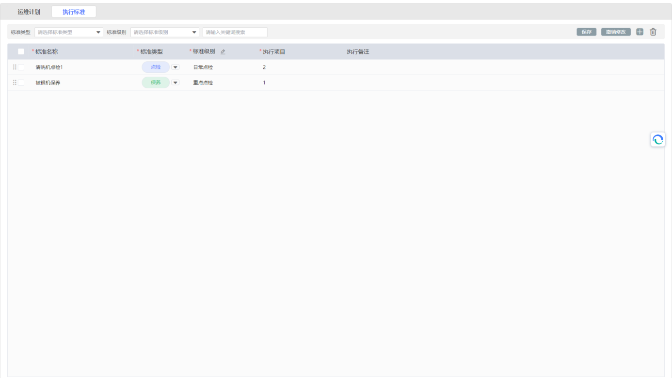 用设备运维组件前,必须先定义执行标准,后续运维计划中需要关联执行标准。