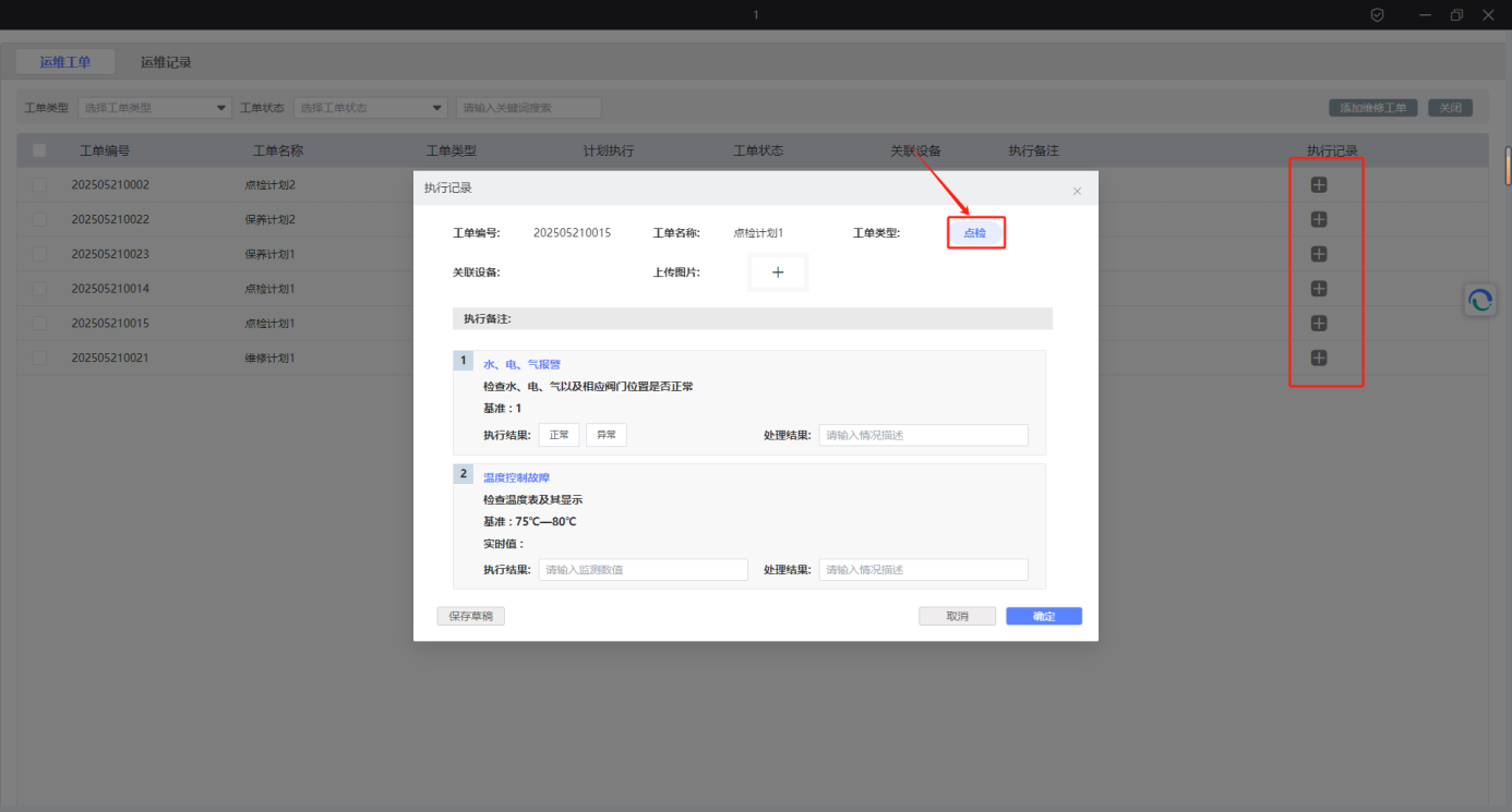 • 计划类型:指运维计划的类型,包含"点检"和"保养"两种类型。