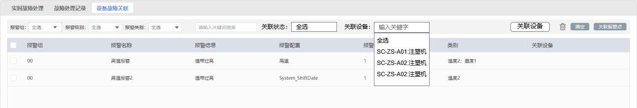 • 关联设备:发生故障的关联设备,用于归档设备的故障处理历史,便于统计和分析。