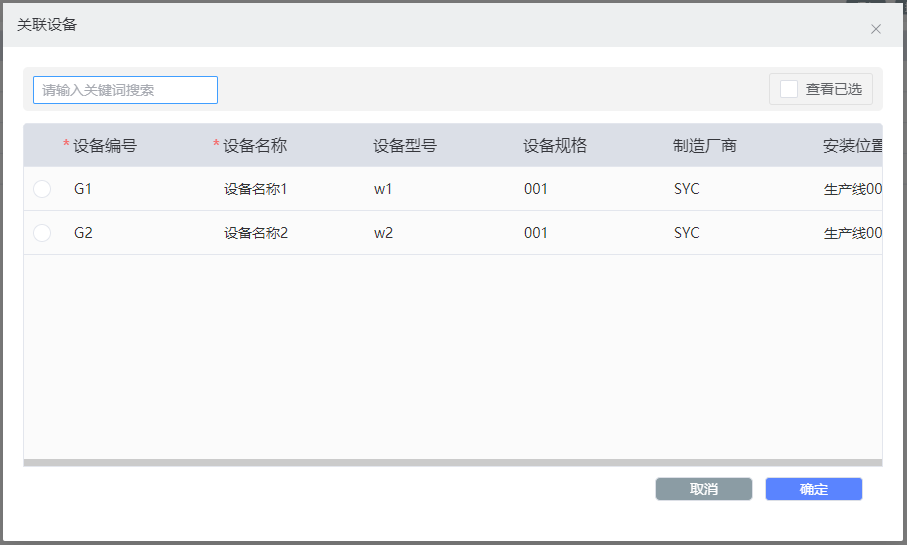 • 设备名称:指设备的通俗命名,便于人员日常称呼识别。名称可重复但建议体现设备用途或工艺编号,方便用户快速查找定位。