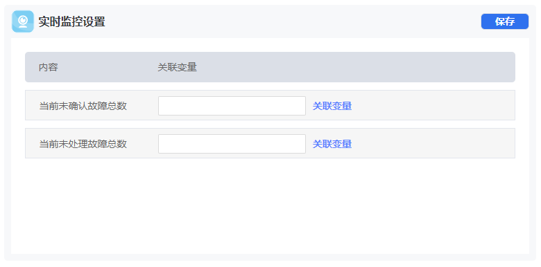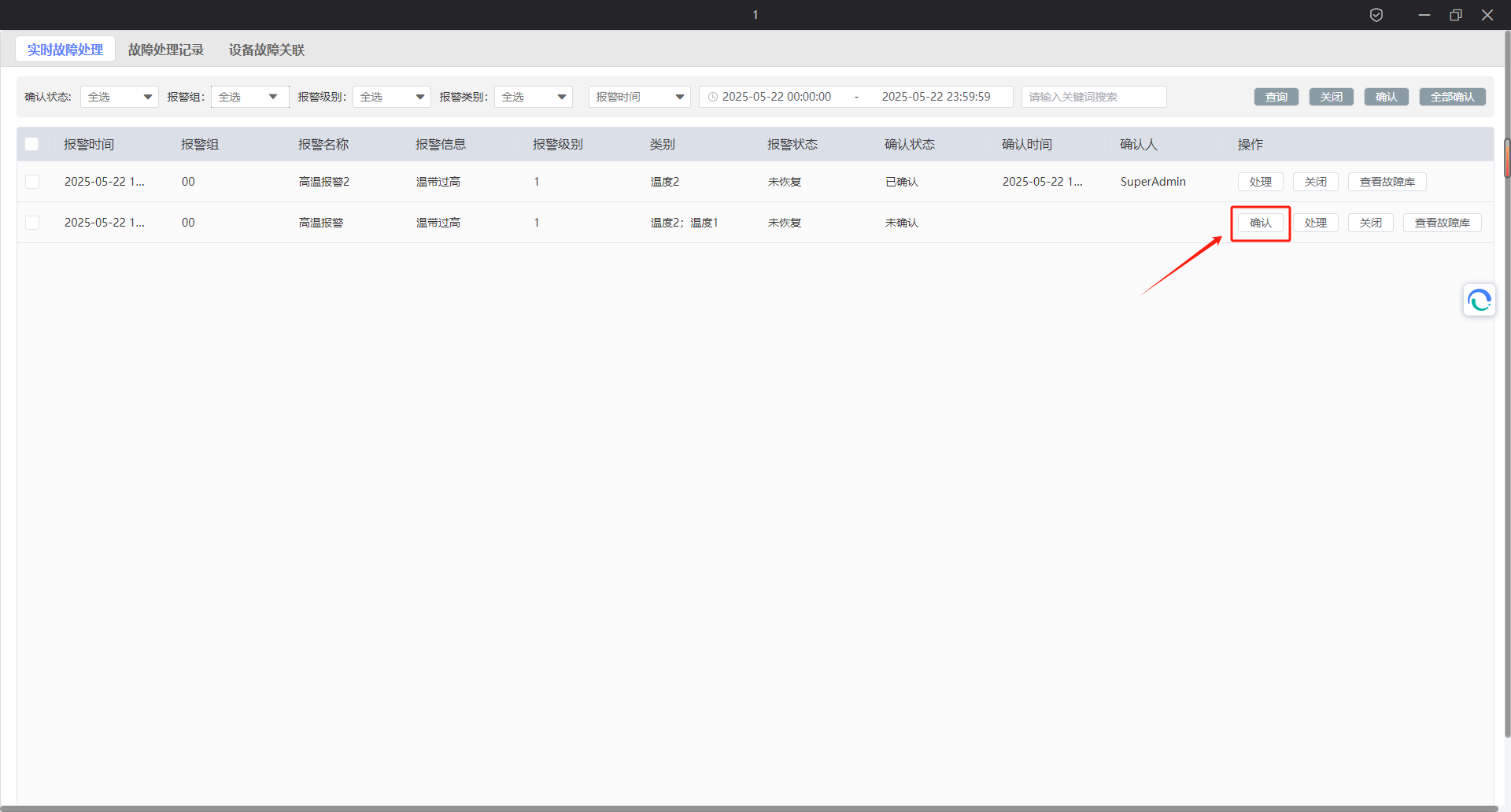• 当前未确认故障总数:当前故障列表中故障状态为"未确认"的数量,每当有新的未确认故障时,该计数值加1;当故障确认后,该计数值减1。
