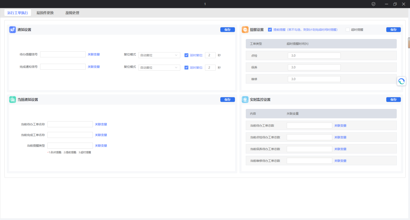 • 待办设置:提供运维工单执行、易损件更换与故障处理界面,用于通知待办设置,可通过组态监控各模块的待处理事项,通知提醒相关现场人员及时处理。