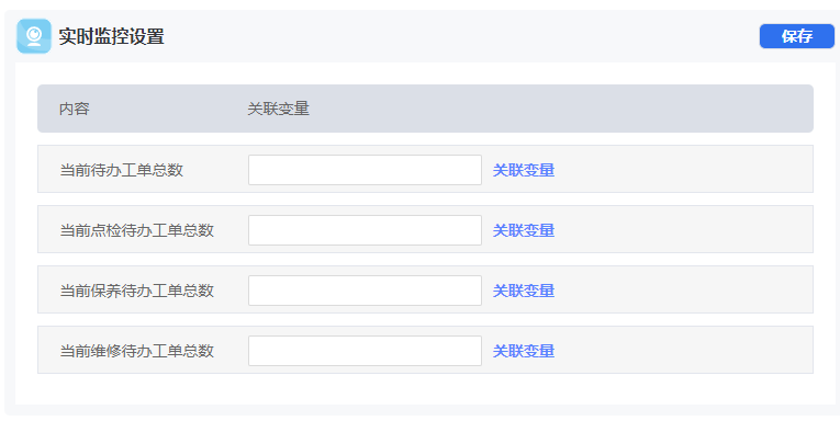 • 当前待办工单名称:最新触发提醒的工单名称,关联字符串类型变量,系统会将该工单名称写入该变量,通过组态,现场操作人员能够直接看到目前哪张工单处于待办提醒中。