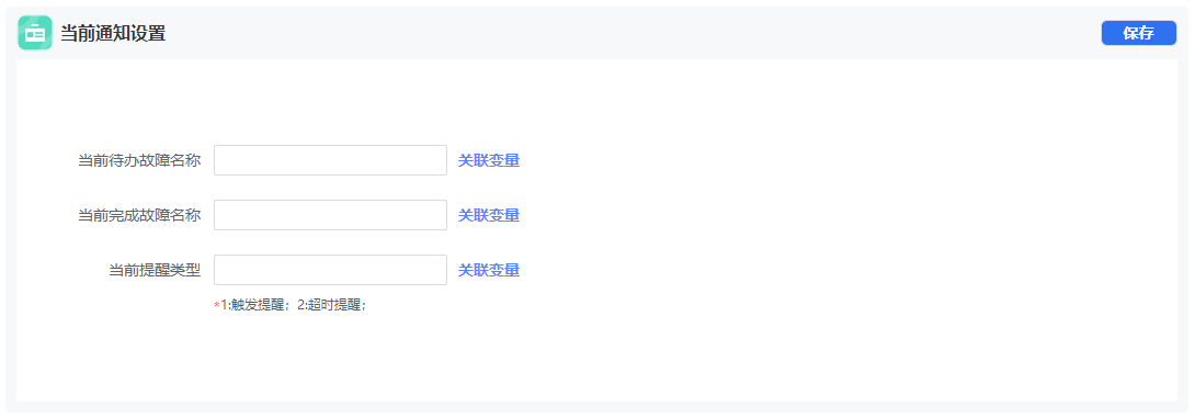 • 当前提醒类型:当前提醒类型,用于标识当前触发的提醒属于哪一种提醒时机类型(触发/超时),从0->1时,代表产生新的故障提醒;从0->2时,代表故障超时未处理提醒。